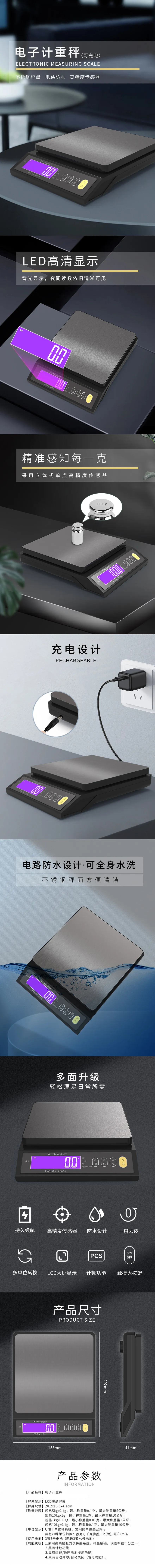 158×202×41mm(B30黑色;5kg/0.1g;防水)