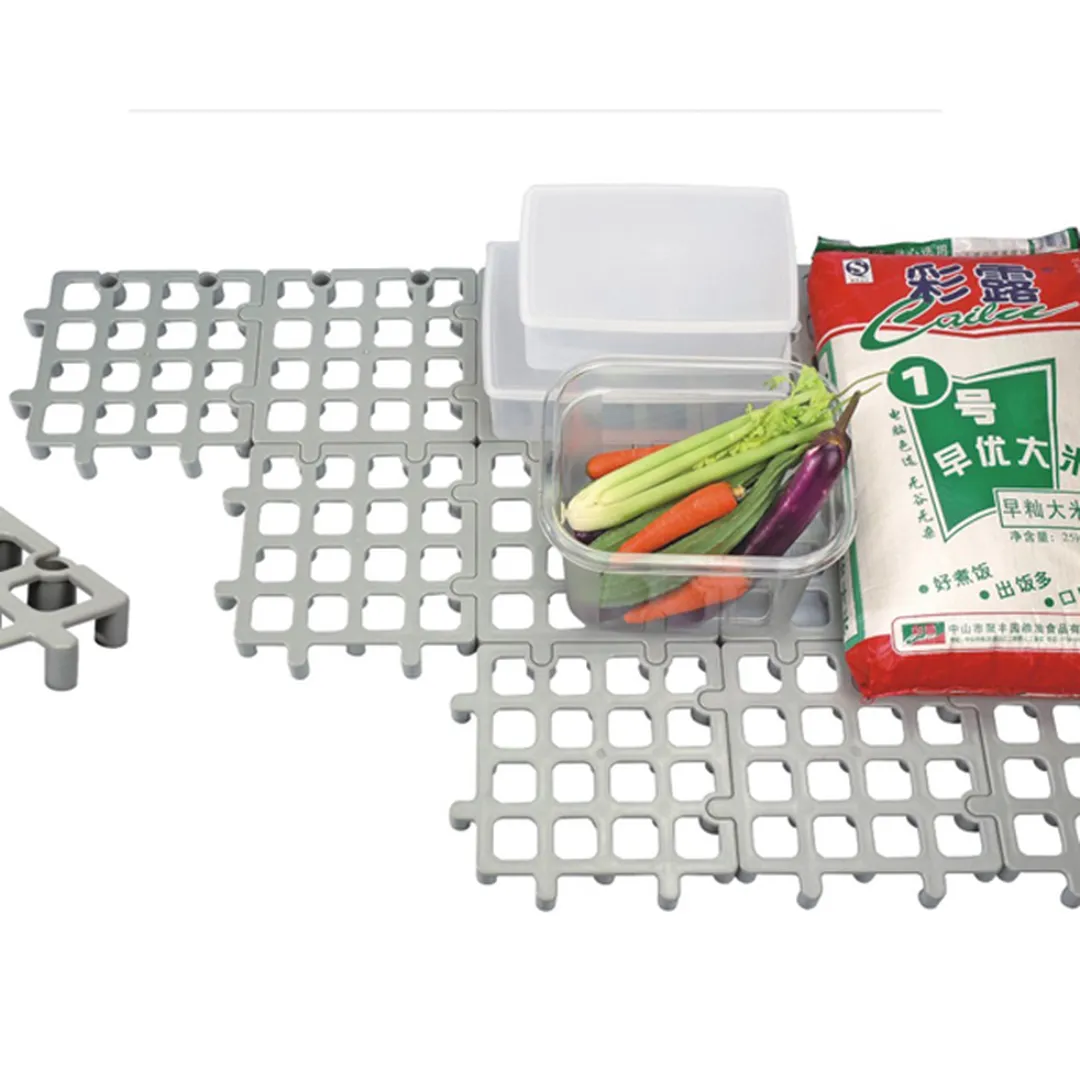 PP材质,灰色,蓝色,适合冷库中使用;简易的互扣式设计,自有组合;组合地板的疏孔设计,可增加空气的流通;可保证储存食物的品质和卫生
