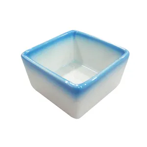 彩瓷方皿(蓝色边)