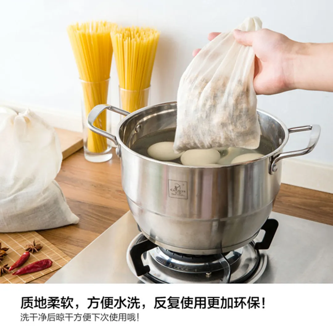 100%纯棉;适用于煲汤时分离滓,水份以及装载香料,12个/组,50组/箱